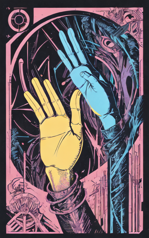 This time, I tried a single hand with a more basic composition. Still didn't really work --you can barely make out the shape of the control net vaguely in the background as well as clearly on frame 1.